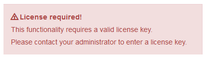 Whenever you see one of the following messages, a valid license key must be entered.