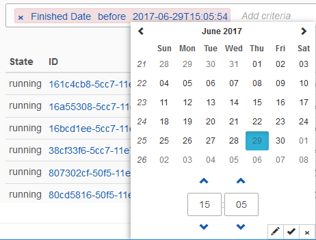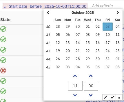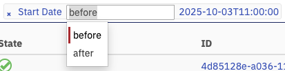 to filter for instances that were started before or after the given date. For example, click on before
