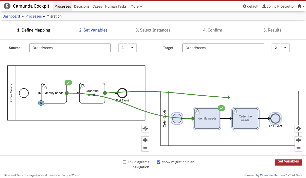 You can still edit the variables you have just added. For instance, if a variable invalidates the migration plan, you can easily correct it to proceed with the process instance migration.