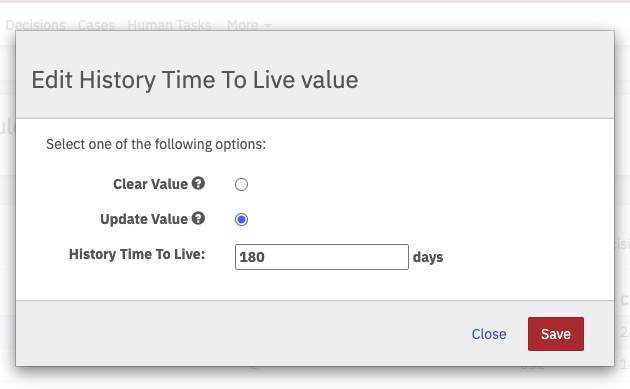 Moreover, it’s also possible to modify the history time to live directly from the table for a specific definition version.