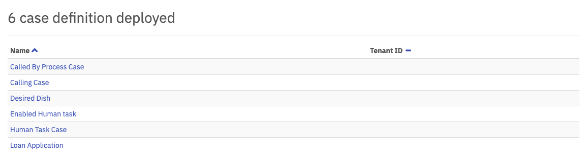 This plugin provides you with a list of deployed case definitions. You can click on the name of a case to go to the case definition view and access more details, like the CMMN Case or the executed case instance view.