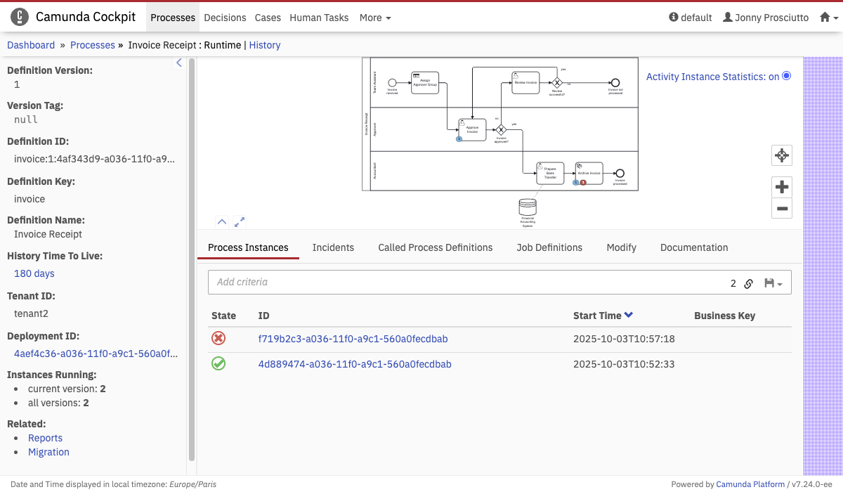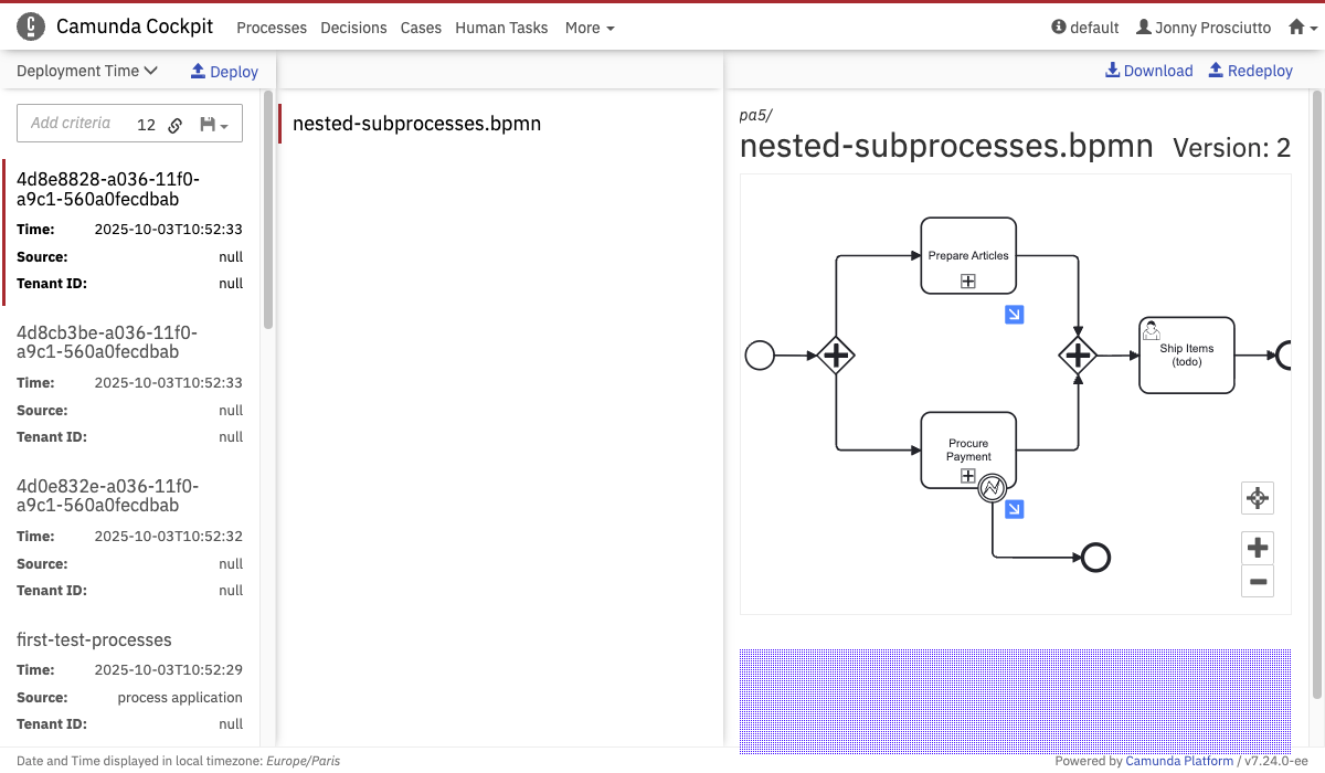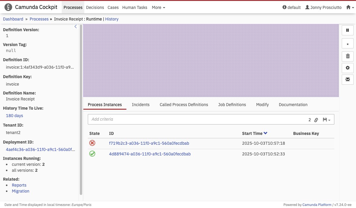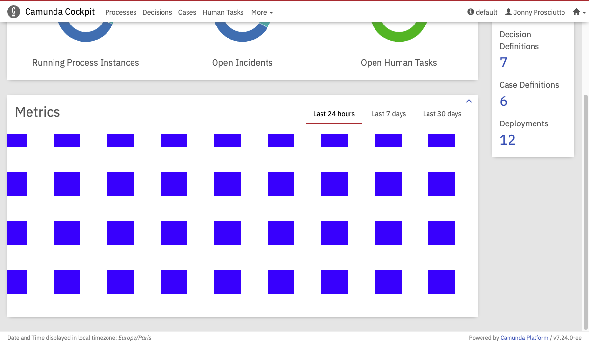 Cockpit defines a plugin concept to add own functionality without being forced to extend or hack the Cockpit web application. You can add plugins at various plugin points, e.g., the processes dashboard as shown in the following example: