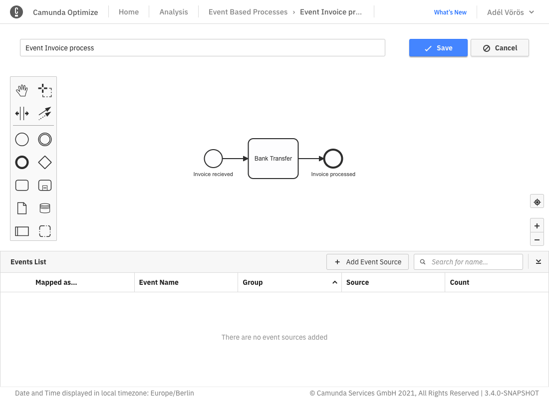 Finally, you can create an Event Based Process by uploading a .bpmn file directly into Optimize.