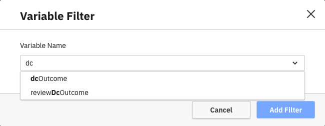 Start creating a variable filter by searching for and selecting a variable from the suggested list of variable names.
